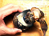 殻から取り出した身を薄く切り、三杯酢(酢1、醤油1、砂糖少量の割合)に約1時間漬ける ↓