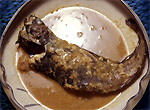 Eドンコのたたきの完成。味噌を少な目にして、できるだけドンコの風味を欲ばるのが漁師流