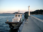 「あさかぜ」に乗せてもらい直島周辺の小さな島々の間を走った。ほとんどが無人島だと思うがきれいな砂のビーチをもつ島が多く以外だった。当日は風が強く波もあったが、養殖生簀はこれらの島をうまく利用し直接外海の影響を受けず、なおかつ潮の流れが速く自然に浄化する場所に設置されているようだ。瀬戸内海も捨てたものではない。 |