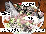 五島の魚のおいしさは、食べていただくと直ぐにわかります。身のしまり具合、そして魚種の豊かさです。とりわけ五島の魚は五島で食べてこそおいしいのです。その訳は、第一に獲れた舞台が東シナ海。はるか沖合いでも水深が95メートル。浅い海は潮が速いのです。魚は流れに鍛えられて育ちます。身が締まって味がよくなるのです。第二に、五島近海では、南から北上してくる黒潮とベーリング海から南下してくる親潮がぶつかり合っているのです。そこにはプランクトンが集まります。それを餌にしている魚も集まってくるのです。魚種も多くなります。キビナゴからクジラまで、そして、スケソウダラやサケまで獲れることがあります。五島は魚の中に浮かんでいる島ですよ。この豊かな海を是非次の世代に引き継いで行きたいですね。 |