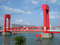 マリンビュー号の出港時間までの間、森口参事が人口 4 万人の本渡市全体が見渡せる『十万山公園』、上島と下島をつなぐ『瀬戸大橋』、歴史を語る『天草切支丹館』などを案内してくれた。下島は佐渡島、淡路島に次ぎ日本で3番目に大きな島で、島内を走る国道 324 号線は片側2車線と“島”の感覚を忘れさせる。瀬戸大橋と平行して架かる真っ赤な『瀬戸歩道橋』は、船が通る時には高さに合わせて橋げたが上下する珍しい橋。車で1時間かかるというので行けなかったが、東部の天草町や南部の河浦町には歴史的・観光的価値の高い場所もたくさんある。