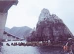 港には 20 隻くらいの漁船が停泊していた。その1隻「えびす丸」に近づくと、驚いたことにその船下に黒っぽい小魚が群れていて海水は底まで見えるほど透き通っている。小魚は「船影を求めて集まったイセジャコ」だそうだ。その先では少し大きな船が船槽からタイやブリ、ミズイカなどを数尾水揚げしていた。魚体が 40cm ほどある大きなミズイカはシューシューと海水を吐いている。間もなく小型トラックが来てそれらを受取っていたので聞いてみると、「民宿で出す魚を揚げてもらった」と言う。島に着いたとたん、いきなり海の見事なまでの美しさと活きの良い魚に圧倒されてしまった。 11 月下旬だと言うのに上着が邪魔になるくらいの暖かさで船影を求める魚の気持が分るような気がする。早速、窓口になっていただいた川畑安光総務・業務部長を訪ね、塩田耕大郎組合長とお二人に島の状況などを聞いた。