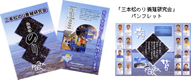 「香川県ののりは皆似ている。同じ事をやっていてはだめ、生き残るためには先をやらないと」―ということで、 2003 年からトレーサビリティーを取り入れたブランド化のためのパンフレットを作成、商社などに配布した。 16 人の生産者からなる『三本松のり養殖研究会』の面々が顔写真入りで紹介されるとともに、使用加工機械や生産工程などが記されたものでのり養殖業界では初めての試みだ。「大きな効果がありました」と組合長。アチコチから問い合わせがあり「昨年は他より 1.5 円高く売れた」。しかし、「だからこそ今年が大変。完璧な製品を作るための努力を怠らないよう担当職員も生産者に厳しく伝えている」と言う。今は県の共販では1〜2位のランクとか。「これをずっと維持したい」と真剣だ。