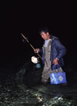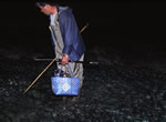 この日の干潮は夜の7時から2時間とのことで、大急ぎで準備にかかりました。潮干狩りと言っても、夜のことだから重装備(?)です。腰まである長靴、カーバイドの灯り、モリ、カギ、獲物を入れる籠の5点セットを借用しました。