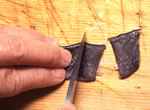 C皮を適当な大きさに切り、ダイコンとキュウリ、ニンジンのせん切りとあわせ、二杯酢をふる