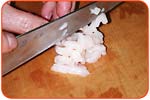 身を1つずつ、まな板いnのせ、細かく切ります。 | ||