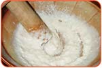 さらにすりながら、ツヤが出てまとまりがよくなり、粘りが出たら、できあがりまでもう少し! | ||