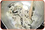 カキの身が縮んで、周りのフリルがひらひらに、身はプクッとしたらできあがりです。 | ||