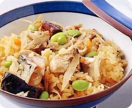 | ※ | 酢を隠し味に使うことと、酒を多めに加え、サバの臭みを抑えること。コンブも一緒に炊き込んで混ぜる。 |