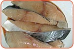 サワラの身を皮の方に水をあて軽く洗います。 |