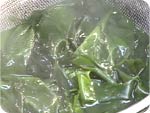 塩蔵ワカメを生で食べる場合には、まずワカメの塩分を洗い落とし、水につけてもどす。